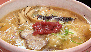 こちらの「新参ラーメン」は、特産の練り梅・すりおろした長芋がコクととろみを加えてくれる、くせになるおいしさ。ご主人が、特産の梅を使ったメニューを作って欲しいとリクエストされて考案したものだそう。
