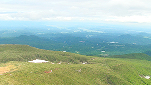途中の景色…山の草花…そして山頂手前にはまだ雪渓が広がっています。それを越え、1,627mの山頂へ。雲がはれた時の景色は言葉にすることのできない、感動です。