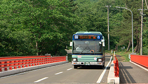 仙台駅前のバスプールから乗車し、八幡町・愛子・熊ヶ根・大倉ダムを経由し、定義へ。