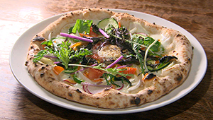 自家製の石窯で焼き上げたピッツァは表面がこんがりパリッと、中はしっとり生地本来のおいしさを楽しめます。テラス席では、犬同伴も可能なので、愛犬家にも人気です。