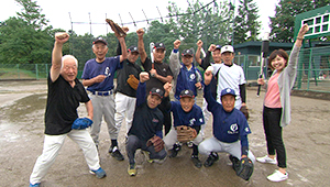 県内のピッチャーとして最高齢の佐々木英明さん(81歳)は、得意のカーブを武器に活躍中です。これからも、チームで健康に、楽しく、野球を続けていきます。
