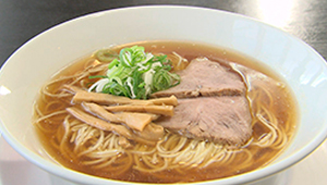 動物系(大崎市の丸鶏と白石の軍鶏)と魚介系(シジミや煮干)のダブルスープに特製の醤油ダレをあわせたスープ。のびにくい自家製麺(国産小麦)、大崎のもち豚チャーシュー。