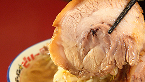 がっつり食べられる一杯。国産豚のウデ肉の旨みひきたつスープに特製の醤油ダレ。やわらかく旨みたっぷりの極厚チャーシュー。にんにくと背脂を溶いて味の変化を楽しむ。
