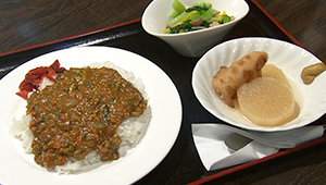 それは「大根っ葉カレー」。カレーのうまさと大根の葉のシャキシャキ感がくせになり、リピーターが大勢いるそう。気さくなママの作る名物料理をぜひご賞味ください。