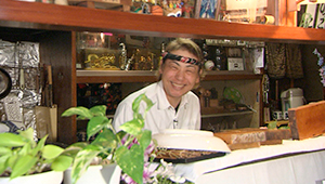 ローリングストーンズのねじりはちまきに優しい笑顔の親方がいるお店。