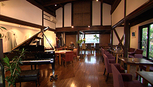 120年前の古民家を改装し、モダンで落ち着いた雰囲気のお店。店内にはグランドピアノが置かれていて、年間100組ほどのコンサートが開かれているそう。