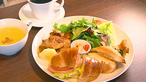 昨年OPENした自宅カフェ。自家製のロールパンを使った「パンプレートセット」は、ハムと卵のサンドイッチ、キッシュや照り焼きチキンがプレートにたっぷりのっています。