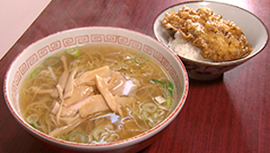 創業70年。変わらない味を守りつづけているお店。学生さんにも安くお腹いっぱい食べて欲しいという、ラーメン、天丼のセットは、なんと500円です。やさしい昔ながらのラーメンを食べるとほっこりした気持ちになれますよ。