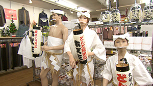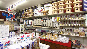 その、裸参りの用品、衣装・提灯・鐘など、裸参りの必需品一式が揃うお店。