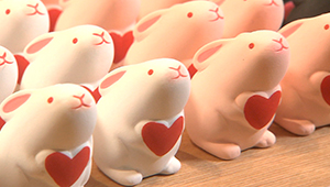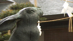 これは、神話『いなばのしろうさぎ』の中で大国主大神様が傷を負ったウサギを助ける場面を再現したもの。それが由来となり、ウサギたちは神のお遣いとされているのです。