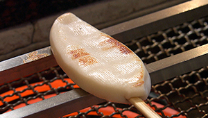 仙台名物“笹かまぼこ”は観光の方にも人気。本店の地下には、手焼き体験ができるスペースがあるんです。自分で焼いて、熱々を食べる楽しみをどうぞ。