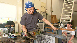 こちらは、世界でも珍しいガラスで作る万華鏡作家・佐藤元洋さんの工房。佐藤さんは、アメリカの万華鏡作家が集まるコンテストで最優秀賞を受賞しているんです。
