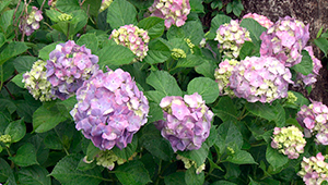 境内には約1000株のアジサイが植えられており、色、形さまざまなアジサイが見られます。