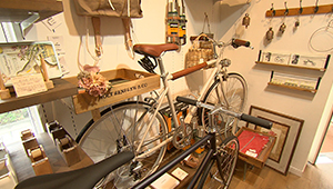 店内には、自転車のグッズやナチュラルな生活雑貨が並びます。自転車だけでなく、見ているだけでも楽しい空間です。