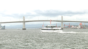 事前予約なしでも気軽に楽しめるクルーズ。小名浜港を出航し、昨年完成したばかりの「小名浜マリンブリッジ」の下を通り外洋へ。約1時間かけて湾内をめぐります。