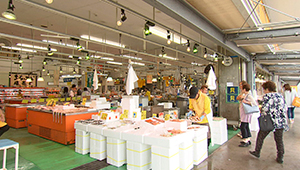 海産物の直売所や飲食店などが軒を連ねる、いわき市の観光物産館。