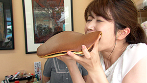 ひときわ目を引くのはジャンボどら焼き。普通のどら焼きの10個分のサイズです。