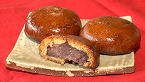 隅まであんこぎっしり、お土産にも人気です。サービスで焼印のように表面に文字を入れてもらうこともできます。お祝いなどで利用する方も多いそうです。