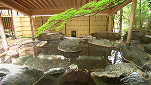 温泉街に賑わいを取り戻そうと結成された「フラ女将(イベントなどで着物姿でフラダンスを披露する)」のメンバーのひとり、若松さんが女将をつとめるお宿。竹林に囲まれた広い庭園露天風呂が自慢です。