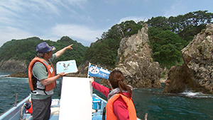 漁師さんたちがウニ漁などで使用する小型の船で、船長さんが様々なガイドをしてくれる海のツアー。ごつごつした岩肌の横をすりぬけ、岩場をくぐり、水しぶきをかぶりながら楽しめます。