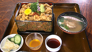 海鮮丼は、時季により仕入れによってネタが変わるので、頼んでからのお楽しみです。また、夏の楽しみウニがたっぷりのったお重は、時期によって8,000円以上の日もありますが、品切れになる人気メニューです。