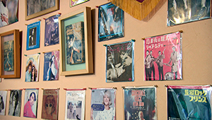 60年代~80年代のレコードジャケットが壁一面に飾られ、店内には懐かしいレコードの音。