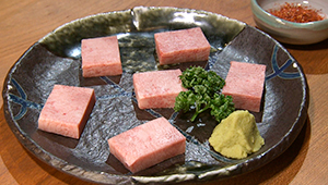 「特タンサイコロ」。和牛のタン1本から、とれても2切れ。全くとれないこともあり、約40頭からようやく1人前できるというスペシャルメニューです。まさに、食べられたらラッキーの“幻のメニュー”です。