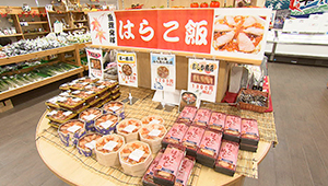いまの季節は、地域の4軒のお店の“はらこ飯”が並びます。あっという間に売り切れてしまうので、お早めにどうぞ。