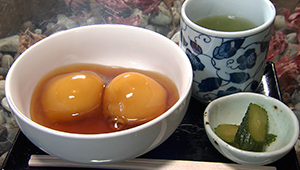 とろりとあまじょっぱい餡がからんで、何個でも頬張りたくなる、昔からの味。お土産はもちろんですが、お店でできたてのあたたかい栗だんごをぜひ。
