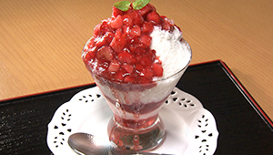 田尻のジャージー牛乳で作った氷を粉雪のように削り、果肉が贅沢に入った甘酸っぱいいちごソースをかけます。ぽかぽか冬の温泉街で味わうひんやりスイーツ、おすすめです。