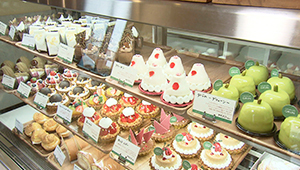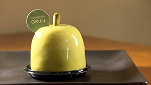 ご主人は、菓子店で修行、さらにヨーロッパの有名菓子店を食べ歩き、念願のお店を持ちました。おすすめの「タルト テ・オレ」は、梅の花の季節ということで梅のソースをトッピングし、愛らしくさわやかなタルトに。お店の名前がついた「グリューン」は、ピスタチオムースのドームの中がショコラムースやラズベリーソースの美しい層に。