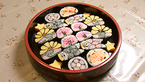 キャラクターや動物、伝統的な模様など、断面が美しい飾り巻き寿司。2時間ほどのレッスンで完成します。この他、デコ餅などのレッスンも行っているそう。お祝いごとの多い春、チャレンジしてみませんか。