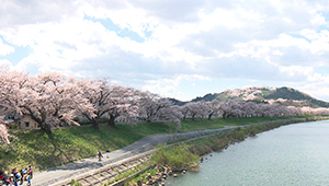 堤防沿いの桜並木は、歩きながらじっくり楽しめます。