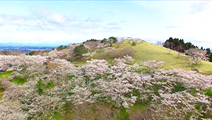 標高224mの山頂周辺では約2,000本の桜が咲き誇ります。