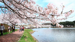 沼の周囲にあるおよそ800本のソメイヨシノが、