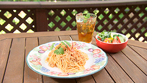パスタは9種類、ピザは13種類(テイクアウトあり)。店を囲むブナやコナラの木々にはリスや野鳥が訪れてくるとか。天気の良い時は緑を眺めながらデッキでの食事もおすすめです。