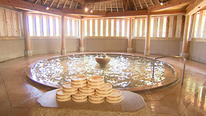 桧造りの大浴場が自慢。清々しい香りに包まれ、ゆっくりと疲れを癒せます。こちらのお湯は低張性のカルシウム―ナトリウム塩化物泉。
