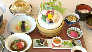 日帰りプランの「竹膳(たけぜん)」は、地元の厳選された素材をふんだんに使った会席膳です。