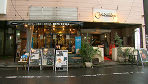 昼間はカフェ、夕方からは店内の仕切りが外されてバルになるお店。