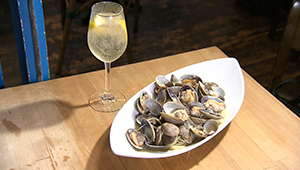 バルでは、北海道産の大粒あさりをお客様が自分の手ですくって(女性両手・男性片手)、それをボンゴレビアンコにして提供してくれるんです。