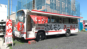 精肉店のご主人が営むバスで移動できるラーメン屋さん。