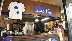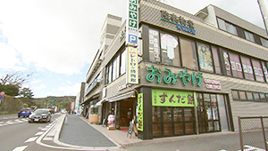 松島の観光桟橋前に並ぶお店の中でも50年以上続いています。定番のお菓子やオーナー考案のグッズも並ぶ、おみやげの購入にぴったりのお店です。物産店になっている1階では、おいしいものが食べられるテナントがふたつ一緒に営業しています。