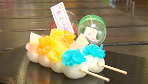 お団子は、フルーツやラムネのクリームがのったパステルカラーの愛らしいビジュアル。
