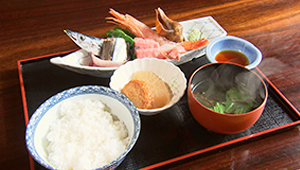 こちらの定食は、家庭的で安くておいしいんです。ご主人が毎朝塩釜で仕入れてきてさばいた刺身は新鮮。揚げ物、煮魚、さまざまなメニュー全てにこのお刺身がつくんです。ゆっくり家で食事をするように、おいしい魚とあたたかい定食をいただけますよ。