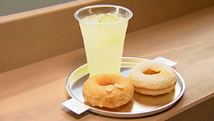オーナーのこだわりのメニューのひとつ、レモネード(ICE)。仕上げにレモンを皮ごとすりおろした物を入れているので、酸味や香りに加え、ちょっとした苦味も感じられるさわやかな一杯です。レモン好きのオーナーが自分で食べたい味・ドーナツを追求して作る絶妙なおいしさをぜひ。