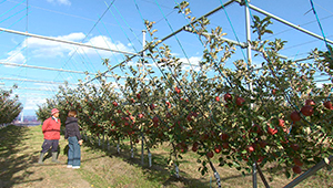 こちらでは季節を通じて様々な旬の果物がを栽培されていて、現在リンゴは5種類、リンゴ狩りを楽しめます。収穫期を迎えているのは、お馴染みの「ふじ」と高級品種の「はるか」。それぞれ2個ずつもぎ取ることができるんです。