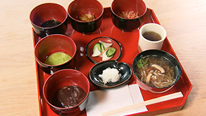 カフェやおにぎり店なども併設されています。里山食堂では、もち御膳がおすすめ。加美町でとれたもち米でつくるつきたてのやわらかいおもちを、あんこ、ずんだ、えび、田舎雑煮などで味わうことができます。