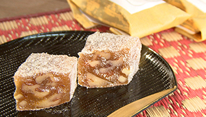 六代目のおとうさまが作り続けている「くるみゆべし」は「越後屋」の看板商品。地元のもち米、くるみをたっぷり使い、香り深い味わいをかもし出しています。地方発送も行っているそうです。