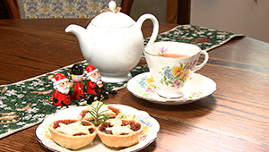 好みのティーカップで楽しめる本格的な紅茶。12月は限定でイギリスのクリスマスに欠かせない「ミンスパイ」「レッドヴェルヴェットケーキ」を可愛らしくアレンジしたスイーツが味わえます。