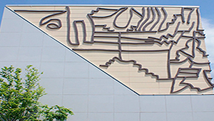 入館無料。看板の文字は、小林覚(さとる)さんの作品です。